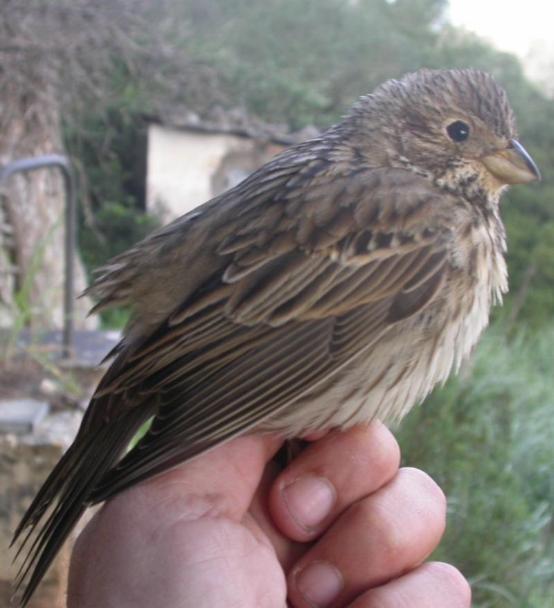 Es el más grande y voluminoso de los emberízidos que se pueden observar de manera regular en las Islas Baleares.
