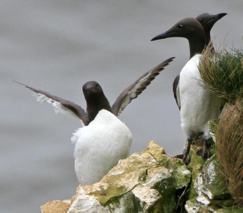 Las dificultades de identificación se pueden dar con algunas especies de Araos (Uria sp.) pero a distancias medias el grueso pico del Alca Común debería sacarnos de dudas. En vuelo las patas de los Araos sobresalen de la cola mientras que en el caso del Alca nunca es así.