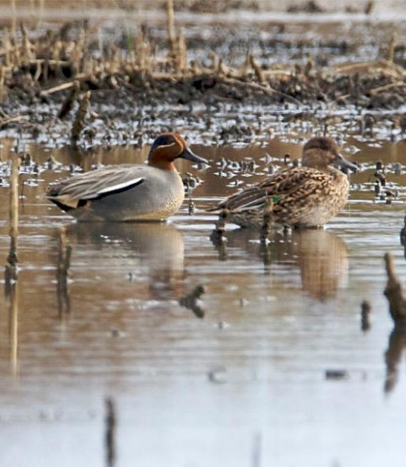 Los machos son muy característicos con el cuerpo de tonos grises, la popa amarilla y la cabeza marrón con una especie de antifaz verde que se extiende hacia la parte posterior de la cabeza y el cuello. Las hembras y los jóvenes son más complicados de reconocer, pero su pequeño tamaño y el espejuelo de color verde pueden ayudarnos a identificar que se trata de cercetas comunes.