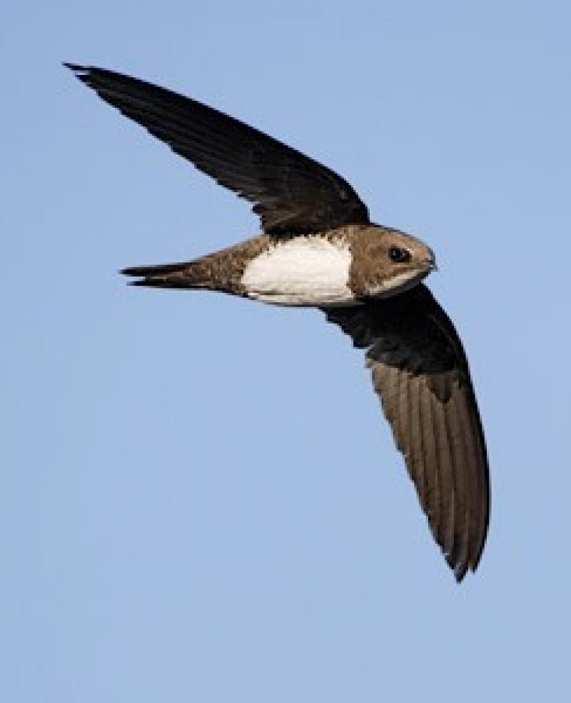 Es el más robusto, grande y fácil de identificar de cuantos vencejos podemos ver en toda Europa, ya que muestra en el abdomen una gran mancha blanca separada de la garganta por un collar marrón claro.