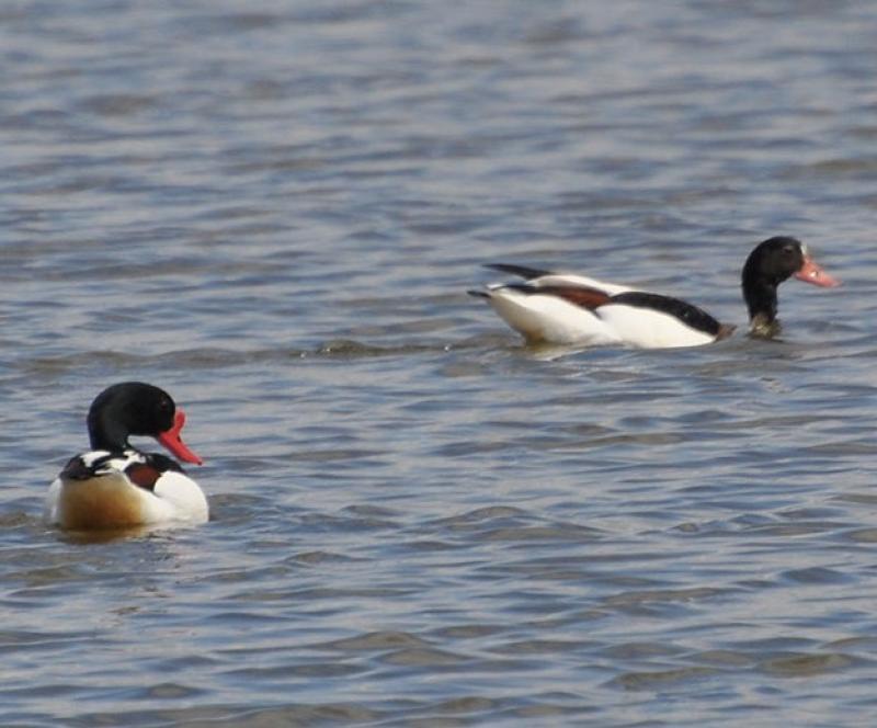 Este pato de tamaño grande y de plumaje blanco y negro, con el frontal de la cabeza y el pico rojo, cría en agujeros o huecos que encuentra principalmente en el suelo, ya sea bajo la vegetación, naturales o excavados por conejos.